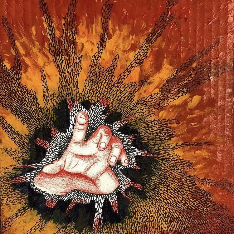Anxiety 9.5” x 9.5” Paint, ink, and colored pencil on paper and cardboardJan 27, 2019A piece I made for a portfolio focusing on my experiences of being sick