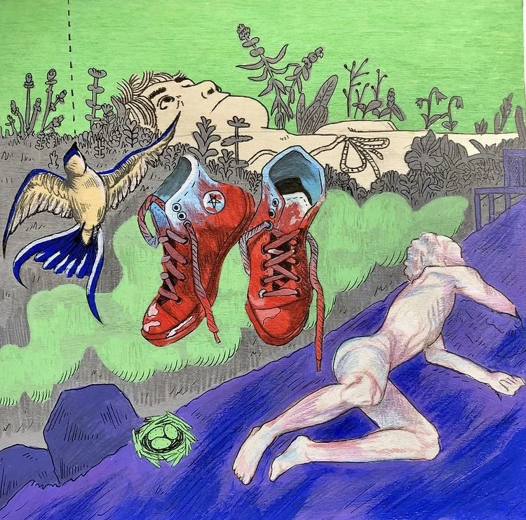 8” x 8” Acrylic, ink, and colored pencil on wood panel