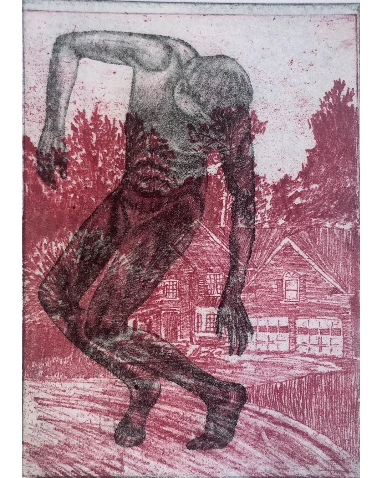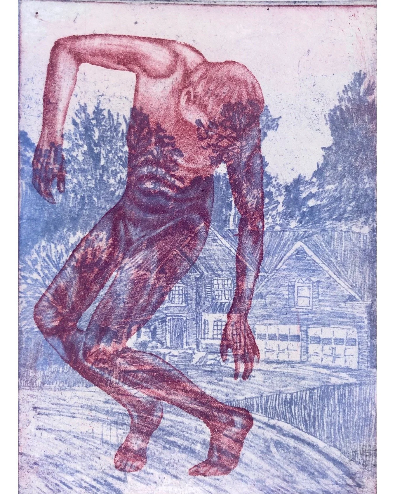 The Ghost In My Childhood Home5 (8” x 6”) 2 plate intaglio print A print based on the trans experience of visiting home when people do not recognize your identity and only refer to you as the person they used to know.
