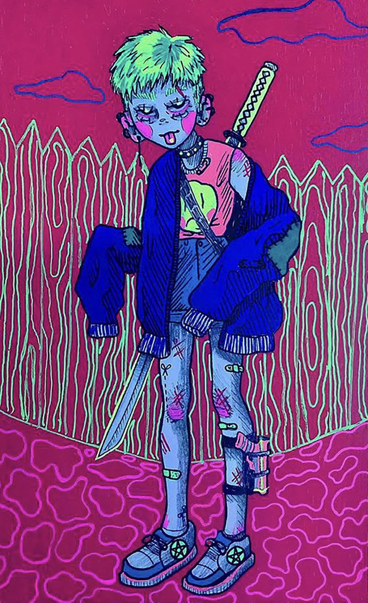 Shave9” x 6” Ink, paint, and graphite on paperFeb 12, 2020A page in my sketchbook where I experimented with neon colors.