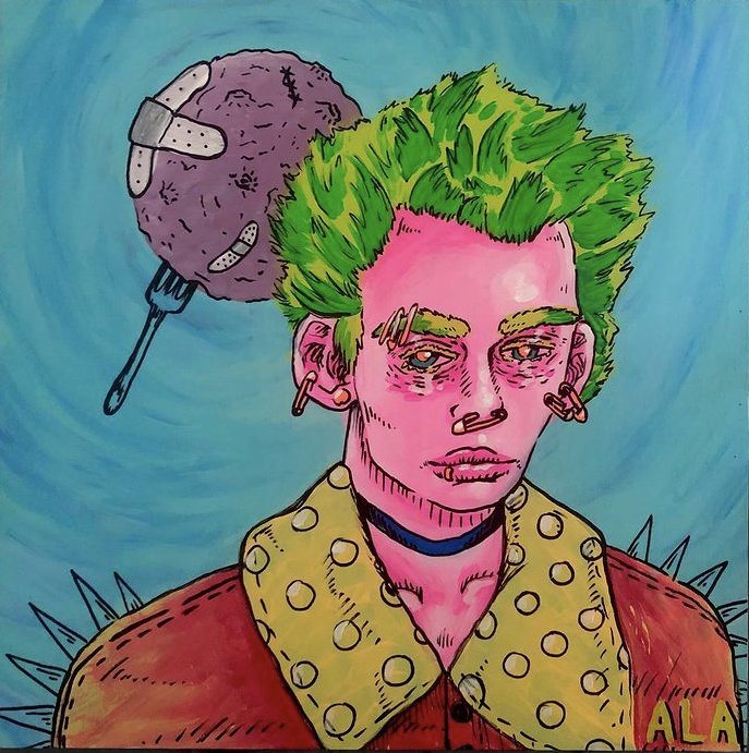 Starving 12” x 12” Acrylic on wood panel May 19, 2020A piece I created out of “creative constipation” while in quarantine as I wished I was someone else living a different life just out of boredom.